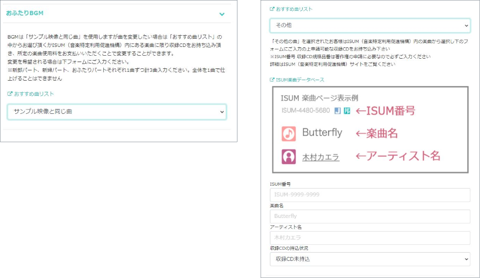 著作権フリー音源をご用意しておりますが ISUMに登録されているアーティスト曲を使用することもできます